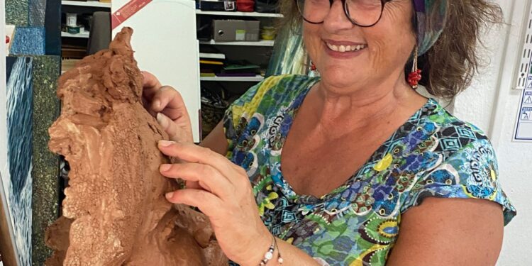 Elle peint comme elle respire, parle en vers, chante la nature et de la terre fait surgir les vies. Florence Bonnevie, ou Flo en signature est une pluri-artiste accomplie, généreuse et talentueuse. C’est au cœur du village de la Poterie des Trois Ilets que nous l’avons débusquée….