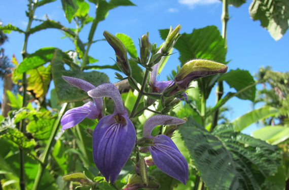 Ce sous-arbrisseau vivace, buissonnant, semi caducifolié, de grande taille est ligneux et vigoureux. Son nom commun est « salvia géante », ou « sauge géante bleue », il appartient à l’ordre des Lamiales et à la famille des Acanthacées. Le genre Brillantaisia comprend une vingtaine d’espèces endémiques de l’Afrique Tropicale, du Centre-Ouest de l’Afrique Australe, de l’Afrique du Sud (Tanzanie, Zimbabwe, Zaïre)...