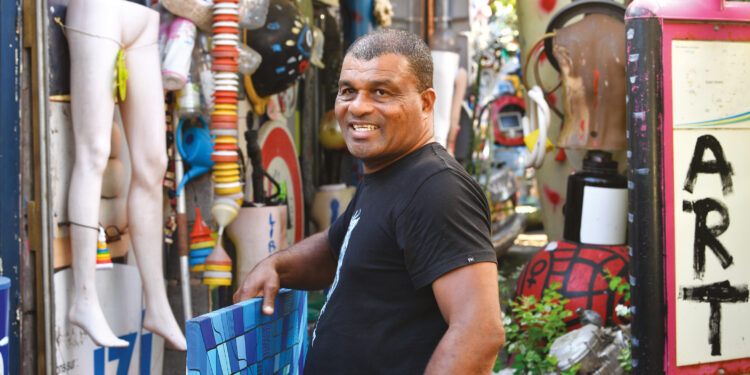Né en 1968 dans le quartier de Tanambo à Saint-Pierre, ce marmail la kour expose aujourd’hui ses œuvres contemporaines dans le monde entier. Il compte plus de 300 expositions !