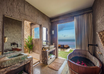 L’ouverture de cette maison permet de bénéficier d’une vue splendide du vieux volcan surplombant une gigantesque piscine de 90 m², équipée d’un système de son subaquatique, accompagnée de son pool-house avec mini-bar, et bordée de palmiers, cocotiers et bananiers. Il faut traverser ce jardin paradisiaque pour accéder aux pavillons des chambres, ouverts autour d’un grand patio. Les chambres, très claires et lumineuses, font la part belle au mobilier 60’s de Charles Eames. Les salles de bains qui les accompagnent sont conçues avec le raffinement propre à l’utilisation contemporaine du béton ciré, et offrent la possibilité de prendre des douches à l’extérieur, dans de petits jardins intimistes, ou de se rafraîchir dans de sympathiques pédiluves.