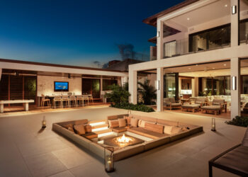 Le mobilier d’extérieur de style resort, de dimensions généreuses sur les terrasses avant, allie simplicité et confort tout en apportant une échelle humaine à ces espaces communs. Ils sont disposés selon des motifs répétés qui créent un rythme unificateur, en harmonie avec l’architecture. Les finitions naturelles exprimées de manière sincère, telles que le bois et les tables en granit « boulder », confèrent un caractère légèrement plus organique aux intérieurs raffinés et à la piscine en marbre, évoquant la connexion terrestre du paysage et des vues.